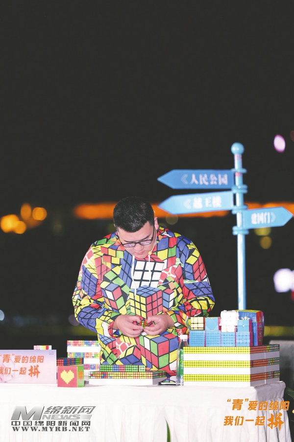 手起“方”落,用魔方“繪制”綿陽(yáng)。據(jù)了解,“‘青’愛(ài)的綿陽(yáng),我們一起拼”系列活動(dòng)已舉辦兩次。7月20日,9800個(gè)小魔方拼出580余年平武報(bào)恩寺。9月22日,4個(gè)小時(shí)、3500個(gè)魔方拼出綿陽(yáng)原創(chuàng)音樂(lè)劇《將進(jìn)酒》中李白的形象劇照。