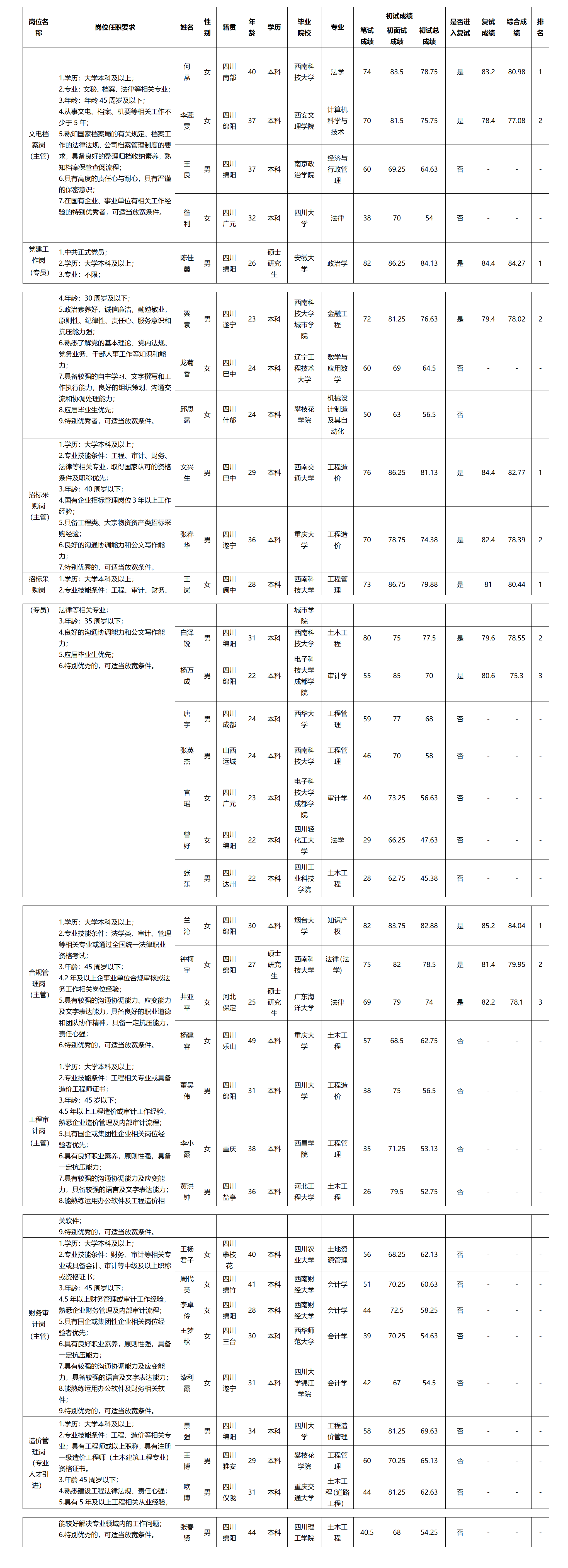 根據(jù)交發(fā)集團發(fā)布的招聘公告及招聘相關規(guī)定,經(jīng)資格審查、筆試、面試等程序,現(xiàn)將成績予以公示,公示名單如下。