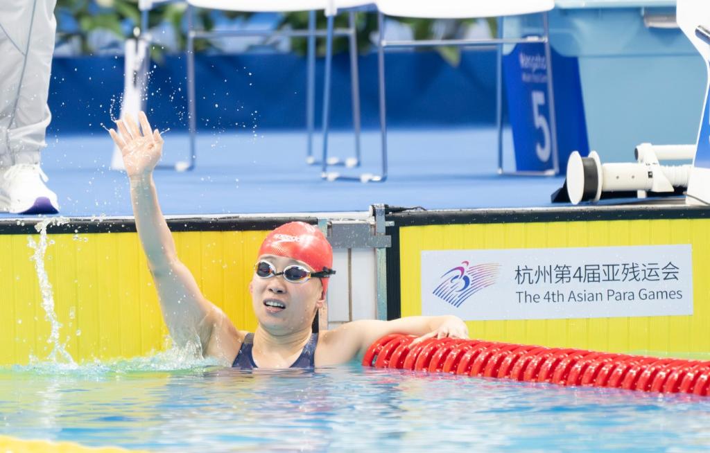 2021年9月3日,東京殘奧會女子50米仰泳S4級決賽,中國選手劉玉獲得冠軍。新華社記者熊琦攝