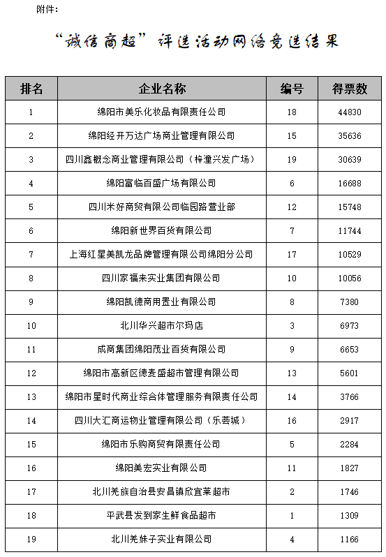 附件:“誠信商超(酒店、餐飲)”評選活動網(wǎng)絡(luò)競選結(jié)果