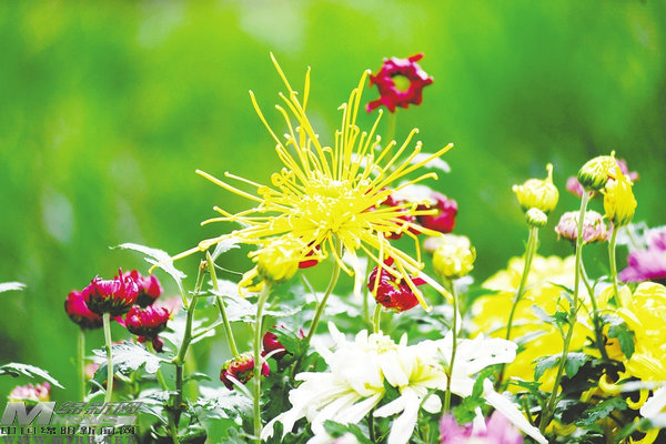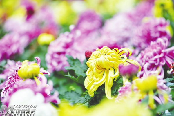 10月27日,在綿陽富樂山第36屆菊花展上,10萬余株各色菊花經(jīng)過了一夜秋雨洗禮后,顯得更加嬌艷。本菊、大立菊、塔菊、懸崖菊、多頭菊……近500個品種的菊花爭奇斗艷,吸引眾多游客前來賞菊。
