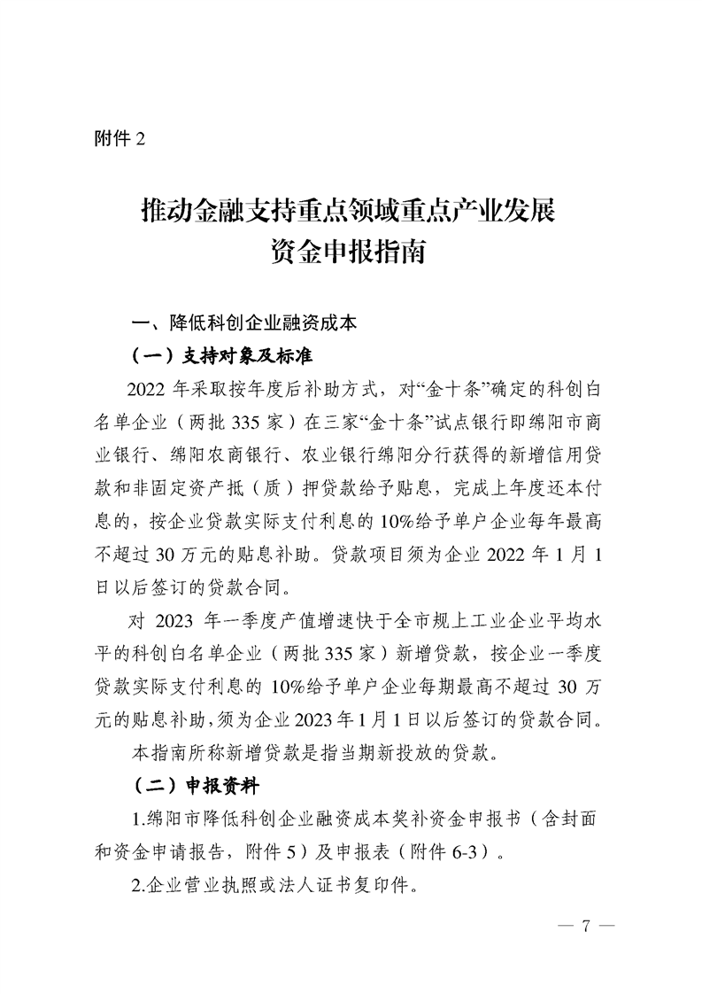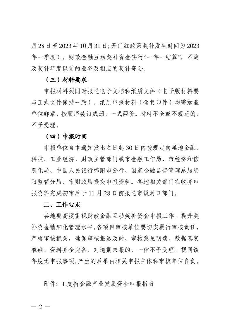 關(guān)于印發(fā)《綿陽市2023年財政金融互動支持實體經(jīng)濟發(fā)展專項資金申報指南》的通知