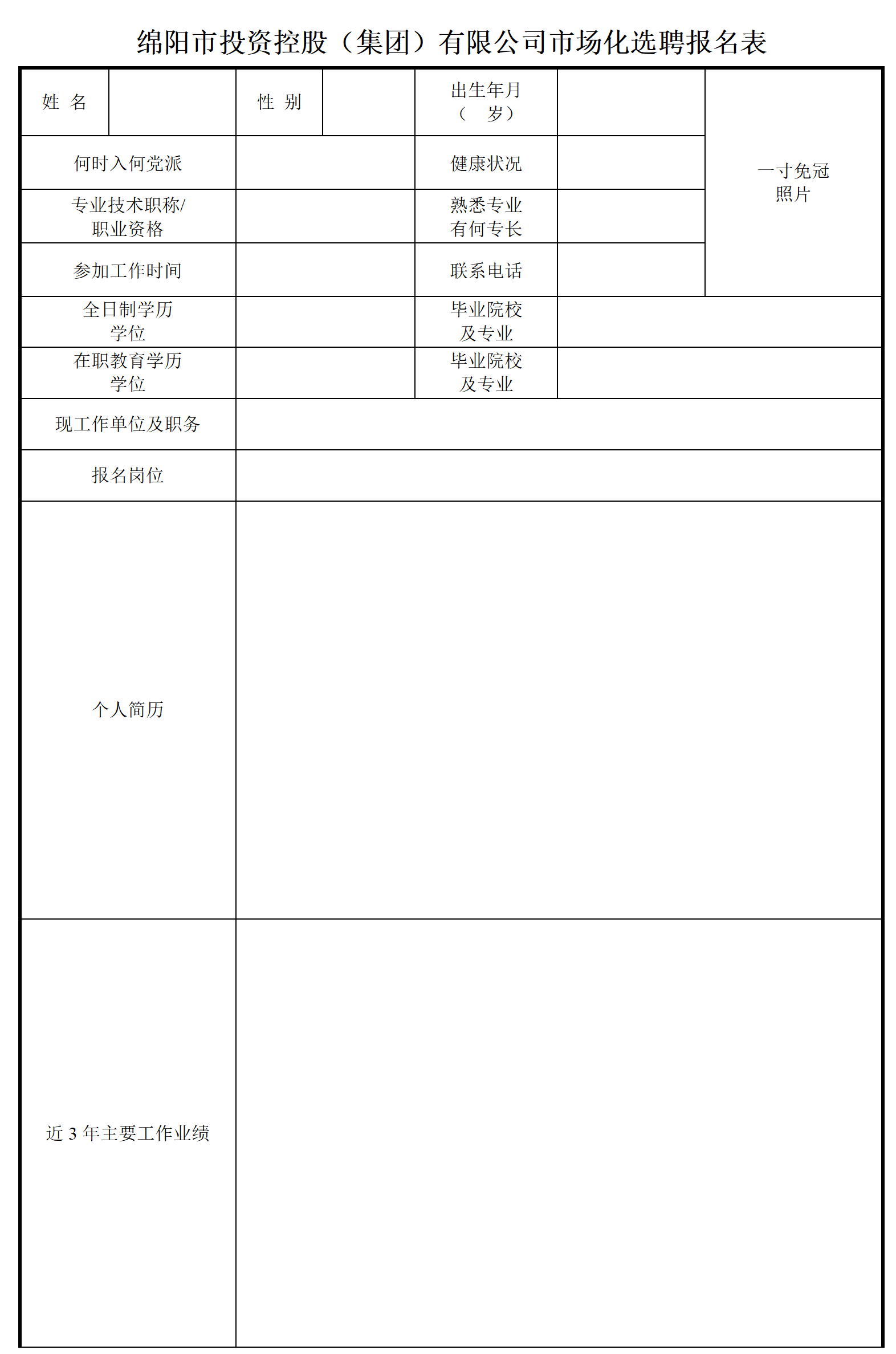 參與本次選聘人員將報(bào)名表(見綿投集團(tuán)官網(wǎng)),職業(yè)履歷、業(yè)績證明材料經(jīng)本人親筆簽名,連同本人有效身份證件、學(xué)歷/學(xué)位證書、職(執(zhí))業(yè)資格或?qū)I(yè)技術(shù)資格證明書等證明材料于11月3日17:00前一式兩份遞交綿投集團(tuán)黨群人事部,或以電子掃描件PDF格式壓縮打包發(fā)送至指定郵箱819078678@qq.com,聯(lián)系人劉先生,聯(lián)系電話:0816-2225066。