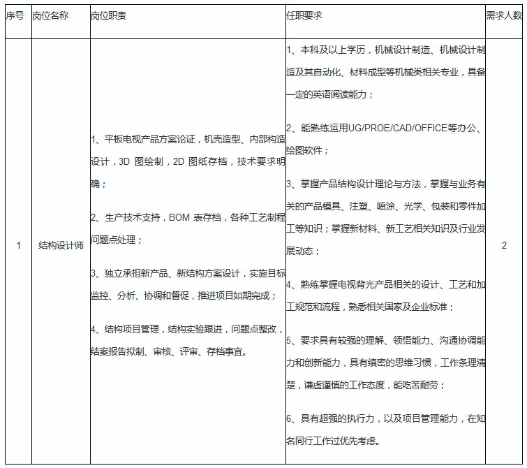根據(jù)公司經(jīng)營(yíng)管理需要,現(xiàn)面向公司內(nèi)外部公開(kāi)招聘,崗位情況及需求人數(shù)如下: