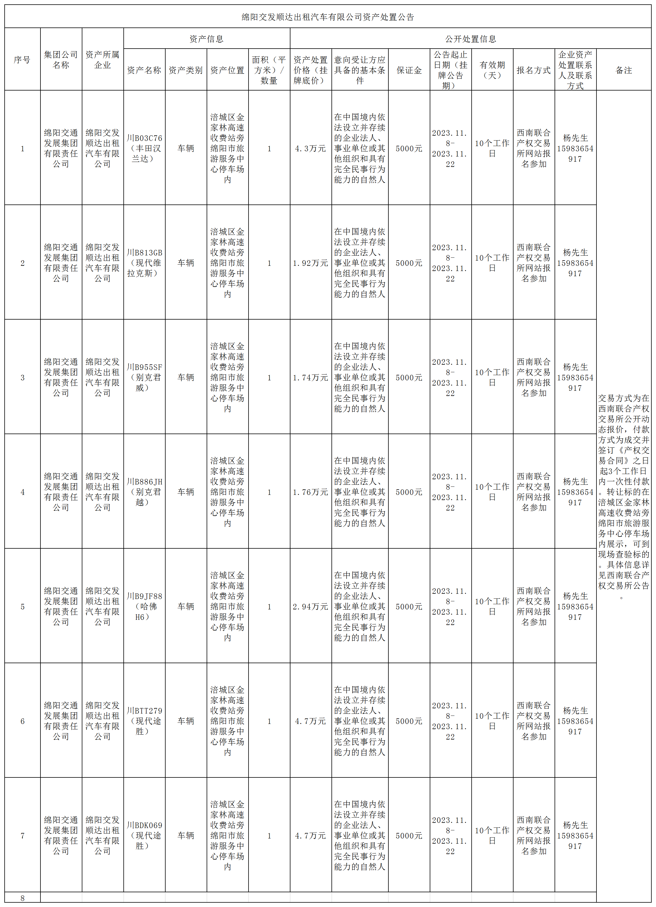 綿陽交發(fā)順達(dá)出租汽車有限公司資產(chǎn)處置公告
