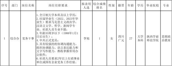 根據(jù)綿陽市水利規(guī)劃設(shè)計研究院有限公司發(fā)布的招聘公告及招聘相關(guān)規(guī)定,經(jīng)筆試、面試、考察、體檢等程序,擬錄用李旭同志到公司工作,現(xiàn)予以公示,具體情況如下: