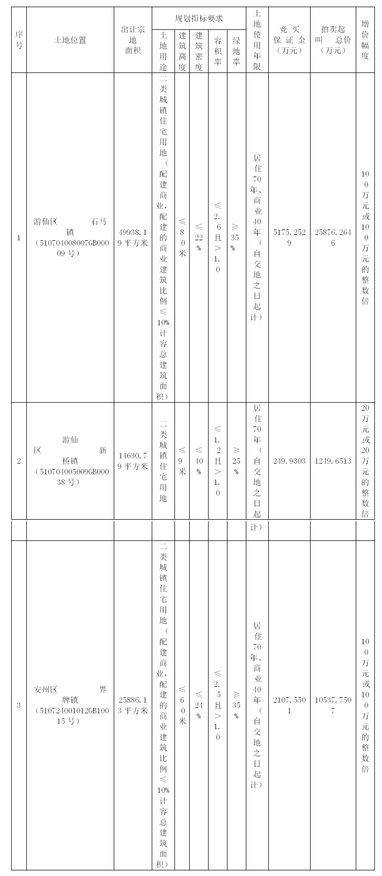 綿陽(yáng)市國(guó)有建設(shè)用地使用權(quán)拍賣出讓公告
