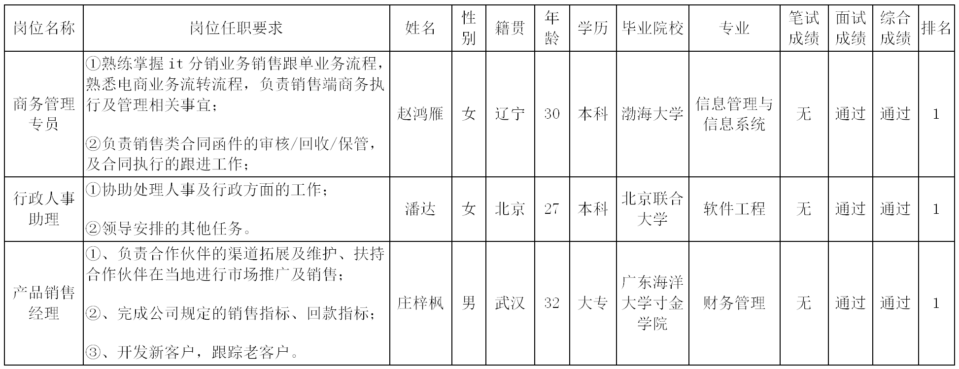 根據四川長虹佳華信息產品有限責任公司發(fā)布的招聘公告及招聘相關規(guī)定,經筆試、面試等程序,現(xiàn)將筆試(面試)成績予以公示。