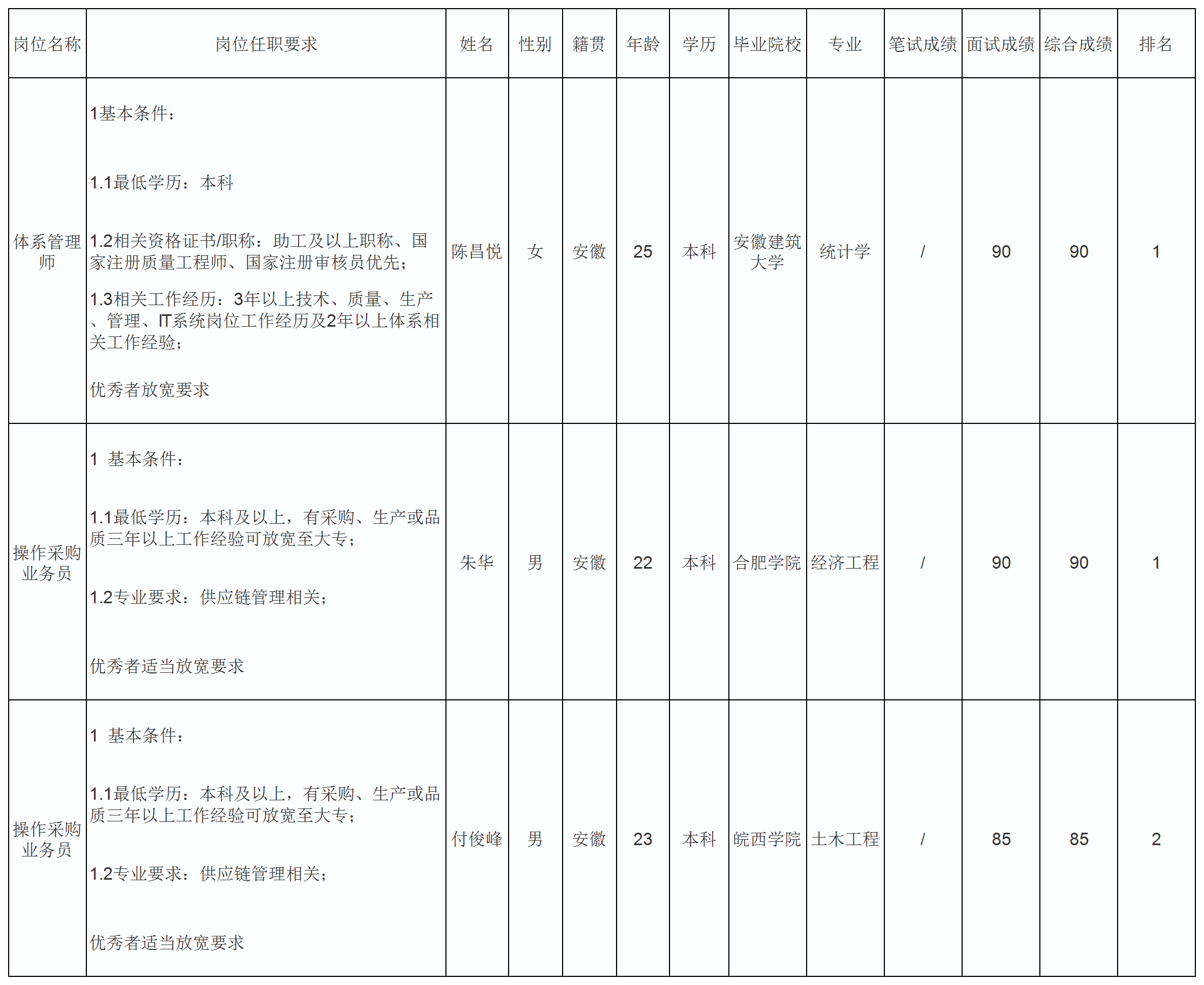 根據(jù)長虹美菱股份有限公司發(fā)布的招聘公告及招聘相關(guān)規(guī)定,經(jīng)面試等序,現(xiàn)將面試成績予以公示。