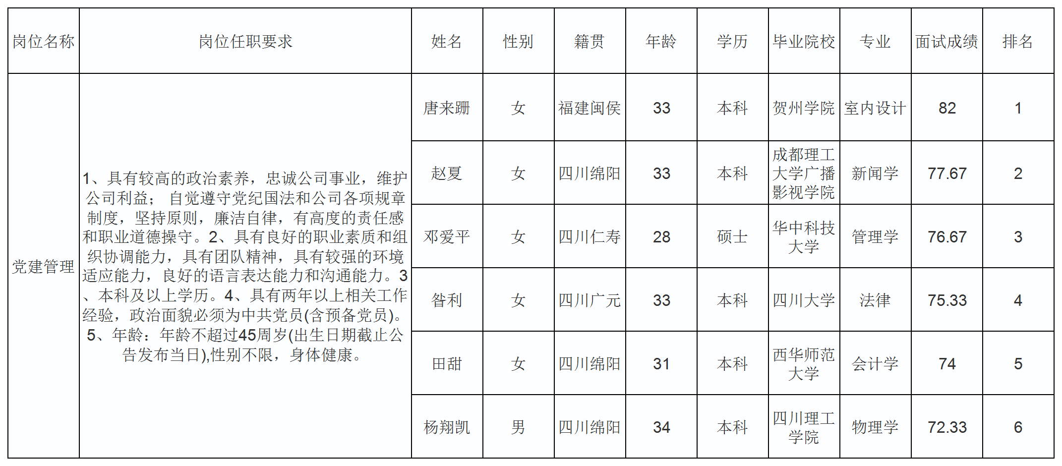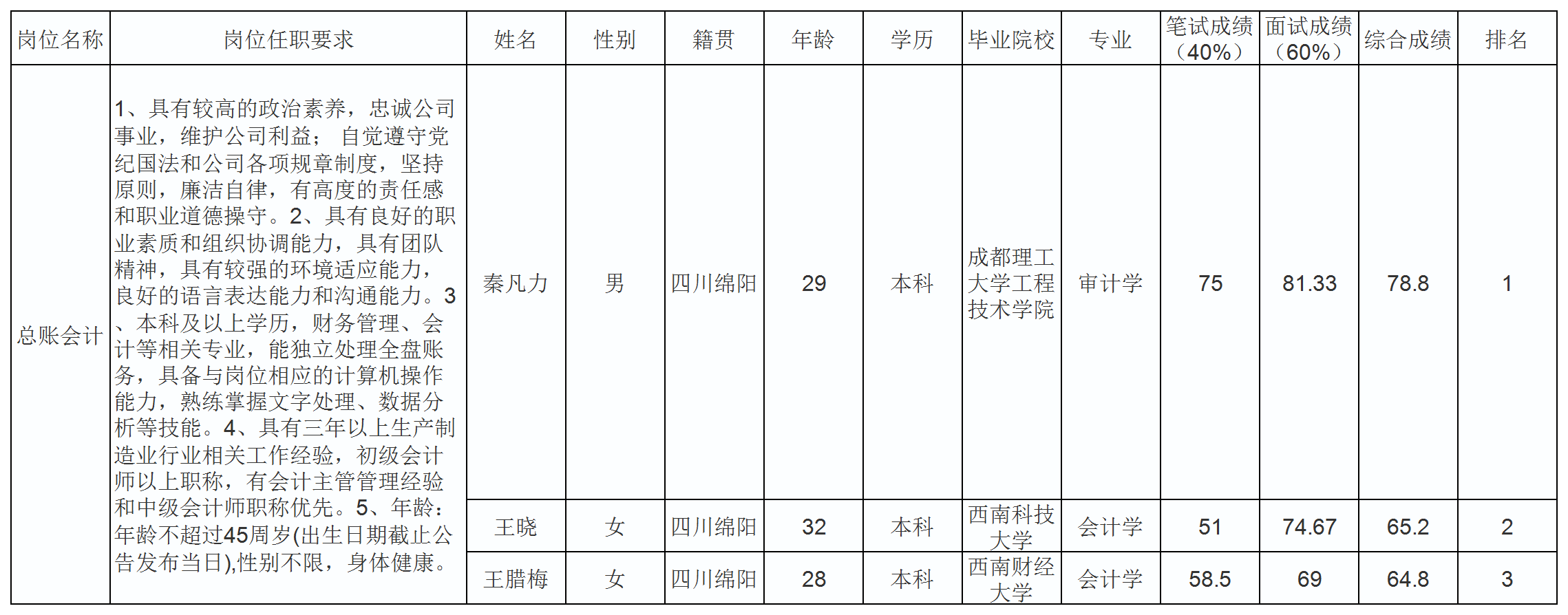 根據(jù)中國(guó)重汽集團(tuán)綿陽(yáng)專用汽車有限公司發(fā)布的招聘公告及招聘相關(guān)規(guī)定,經(jīng)筆試、面試程序,現(xiàn)將筆試、面試成績(jī)予以公示。