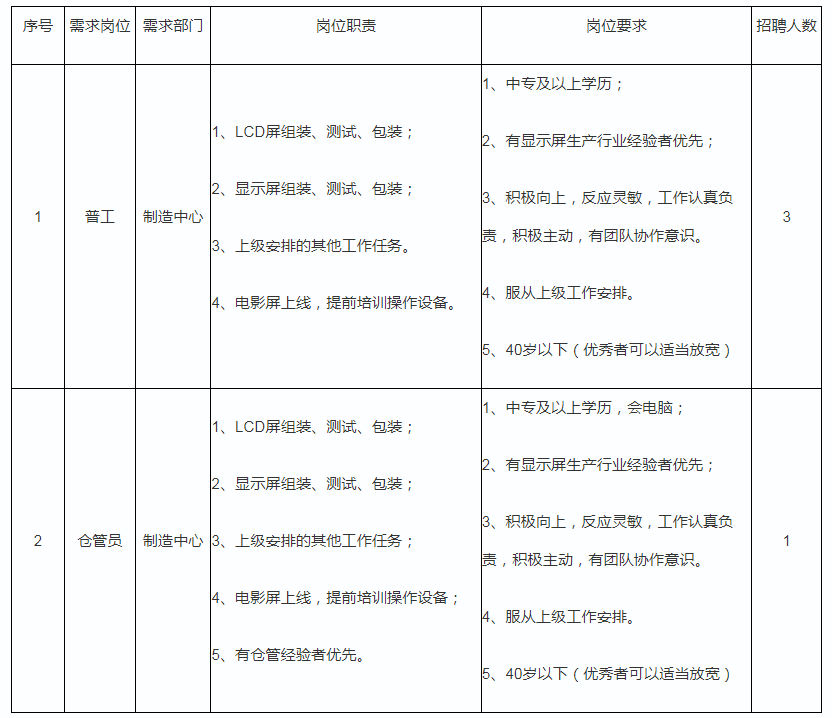 注:招聘信息長期有效;薪酬按照深圳九洲光電有關(guān)規(guī)定執(zhí)行。