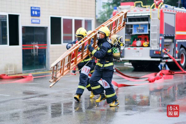 拼速度、拼耐力、拼時(shí)間、拼操作,消防指戰(zhàn)員們揮汗如雨,你追我趕、奮力拼搏。