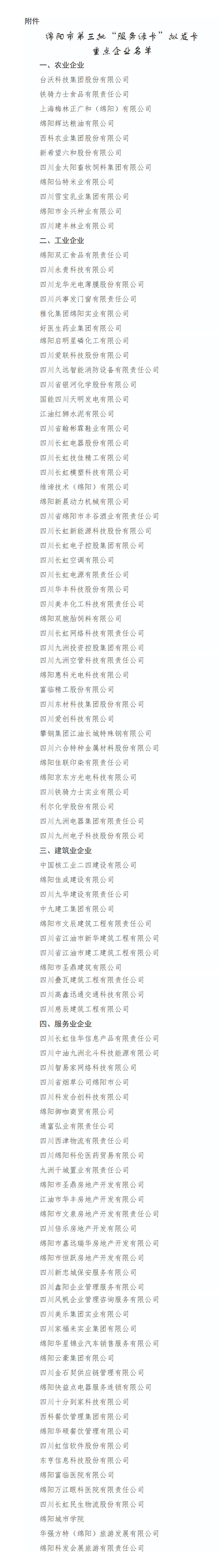 附件:綿陽市第三批“服務(wù)綠卡”擬發(fā)卡重點企業(yè)名單