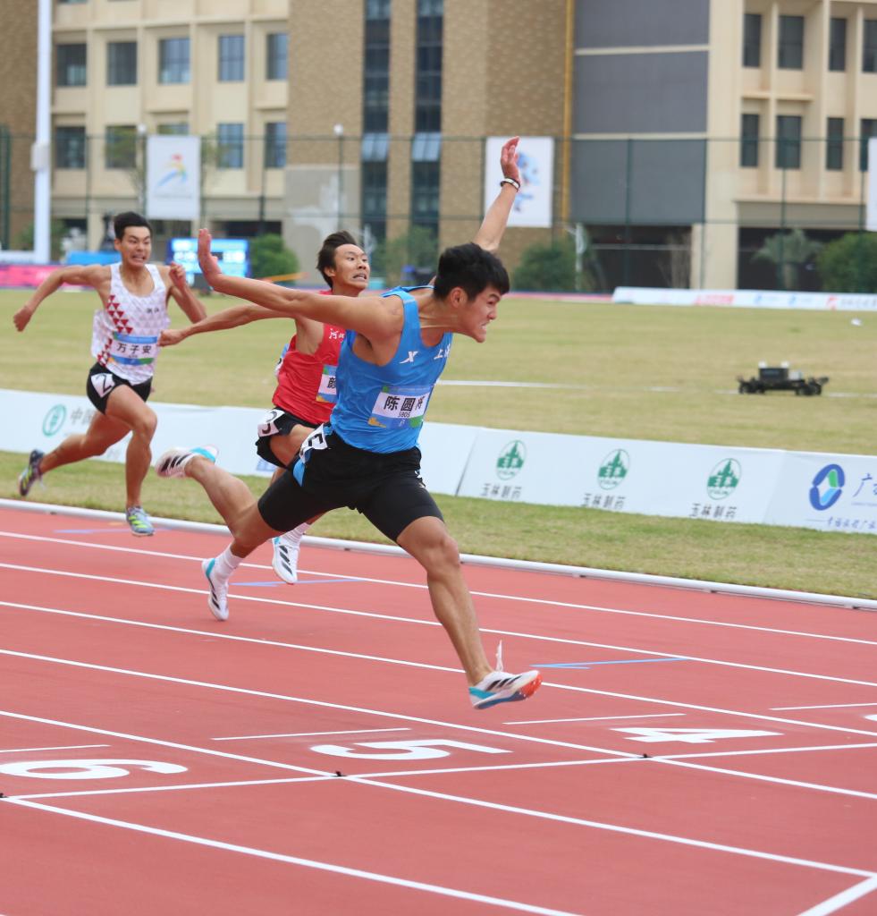 當(dāng)天田徑賽場(chǎng)還出現(xiàn)了動(dòng)人一幕。大學(xué)甲組男子4X400米接力決賽中,廣西隊(duì)第三棒盧顯江受傷后沒有選擇退賽,而是用單腿跳的方式艱難完成比賽,現(xiàn)場(chǎng)觀眾和工作人員不約而同為他加油鼓勁。