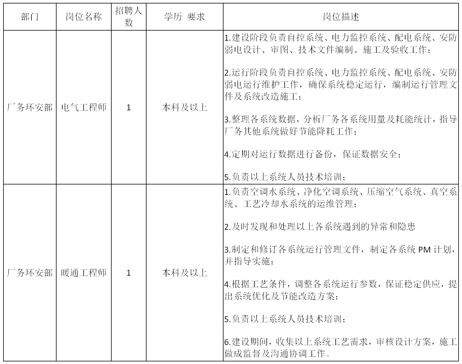?。?)具有芯片制造、芯片封測、新能源、醫(yī)藥、面板等行業(yè)廠務自控運維管理或施工管理經(jīng)驗3年以上;