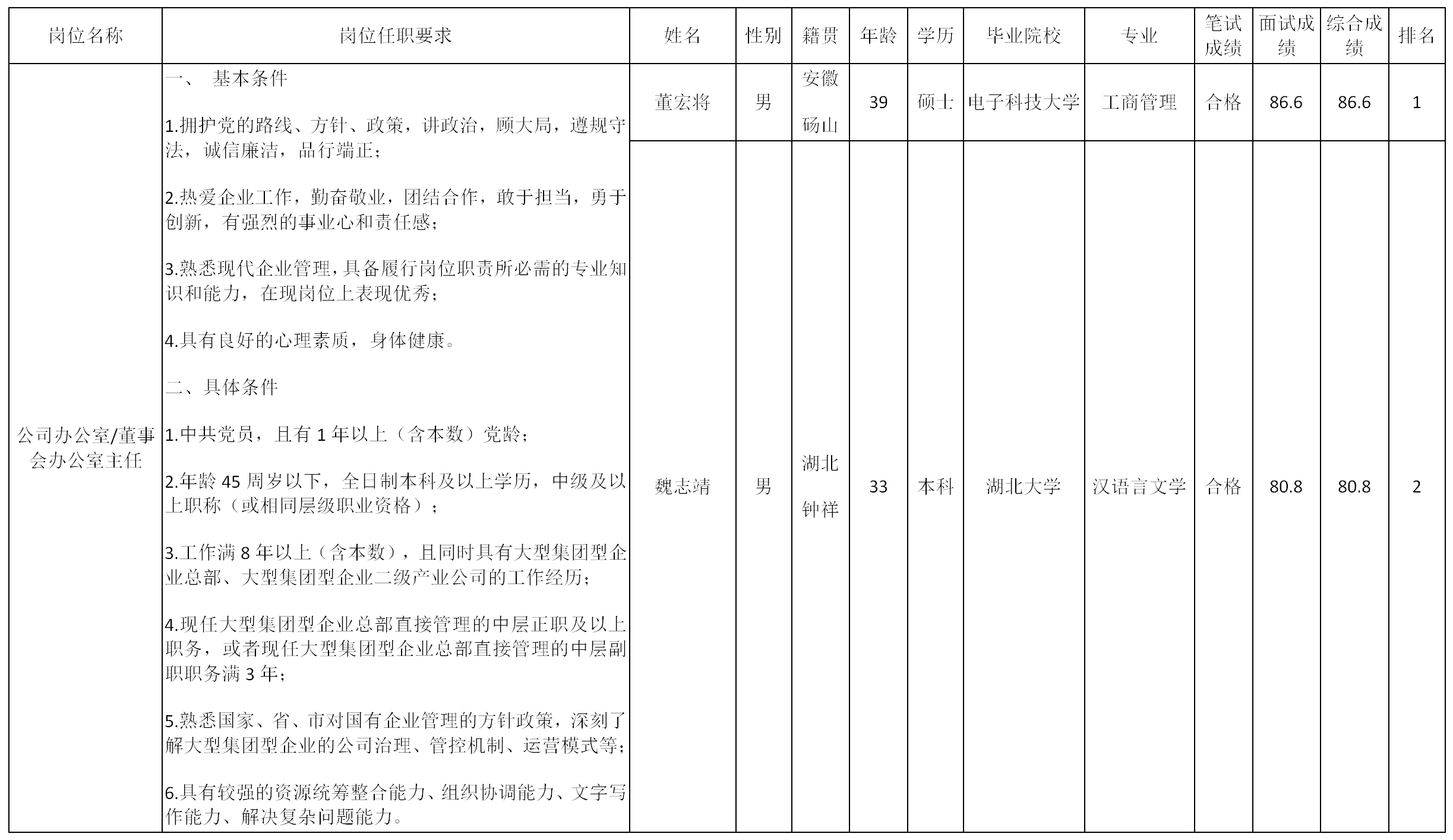 根據(jù)四川九洲投資控股集團(tuán)有限公司發(fā)布的招聘公告及招聘相關(guān)規(guī)定,經(jīng)筆試、面試等程序,現(xiàn)將筆試(面試)成績予以公示。