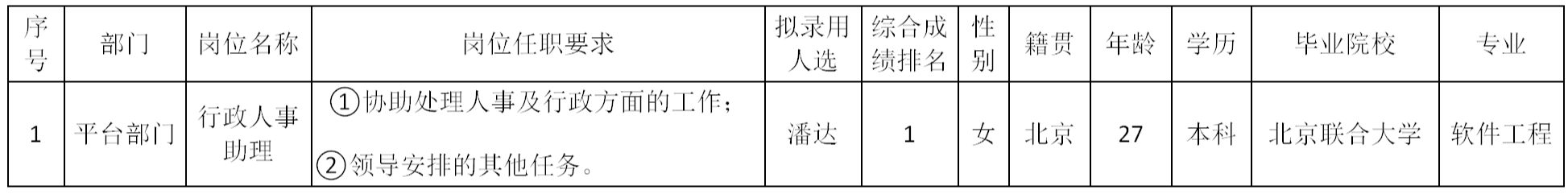 根據(jù)四川長虹佳華信息產(chǎn)品有限責任公司發(fā)布的招聘公告及招聘相關(guān)規(guī)定,經(jīng)筆試、面試、考察、體檢等程序,擬錄用潘達同志到四川長虹佳華信息產(chǎn)品有限責任公司工作,現(xiàn)予以公示,具體情況如下: