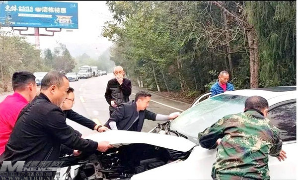 金禾、黃義波和路人將事故車(chē)推到安全地帶