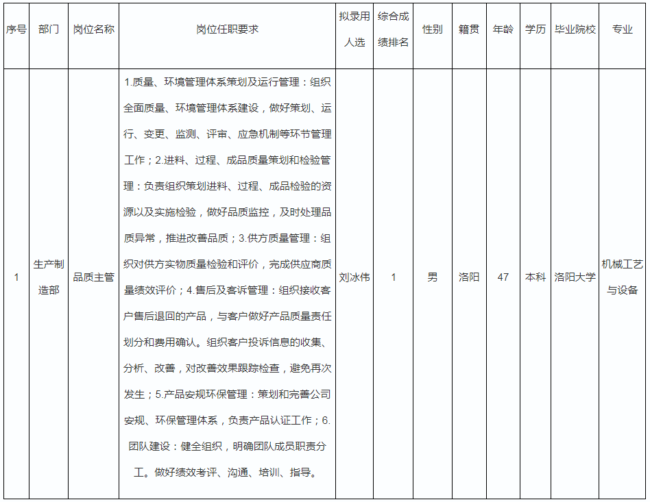 根據(jù)廣東長虹器件科技有限公司發(fā)布的招聘公告及招聘相關(guān)規(guī)定,經(jīng)筆試、面試、考察、體檢等程序,擬錄用劉冰偉同志到廣東長虹器件科技有限公司工作,現(xiàn)予以公示,具體情況如下: