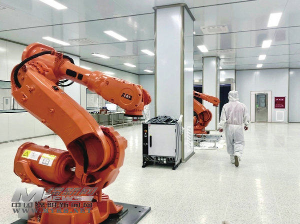 走進(jìn)示潤智慧顯示終端智能制造總部項目生產(chǎn)車間,各條生產(chǎn)線快速運轉(zhuǎn),橙色機(jī)器人一刻不停地?fù)]舞著機(jī)械手臂作業(yè),工人們身穿白色防塵服,熟練地進(jìn)行檢測,生產(chǎn)出應(yīng)用于各種顯示終端設(shè)備的玻璃蓋板、TP(觸摸屏)。