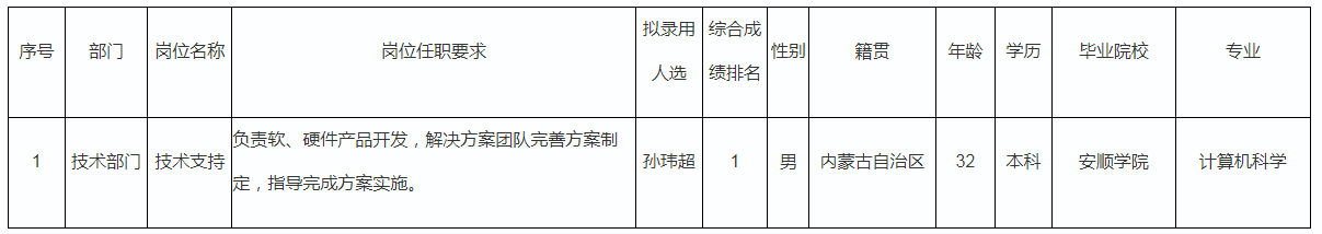 根據(jù)四川長虹佳華信息產(chǎn)品有限責任公司發(fā)布的招聘公告及招聘相關(guān)規(guī)定,經(jīng)筆試、面試、考察、體檢等程序,擬錄用孫瑋超同志到四川長虹佳華信息產(chǎn)品有限責任公司工作,現(xiàn)予以公示,具體情況如下: