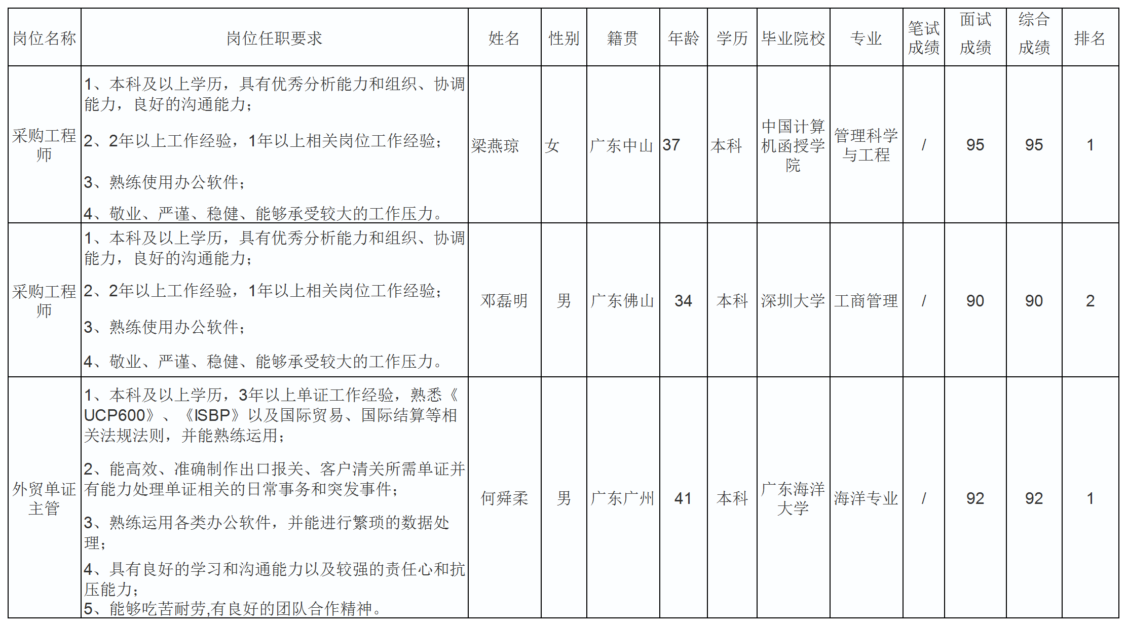 根據(jù)廣東長(zhǎng)虹電子有限公司發(fā)布的招聘公告及招聘相關(guān)規(guī)定,經(jīng)面試等程序,現(xiàn)將面試成績(jī)予以公示。