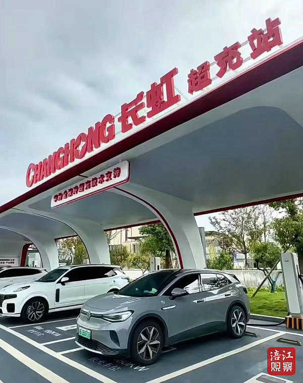 全液冷超充站,長虹與華為合作,由長虹投建的四川首個全液冷超充旗艦站,充電快,快至1秒1公里;