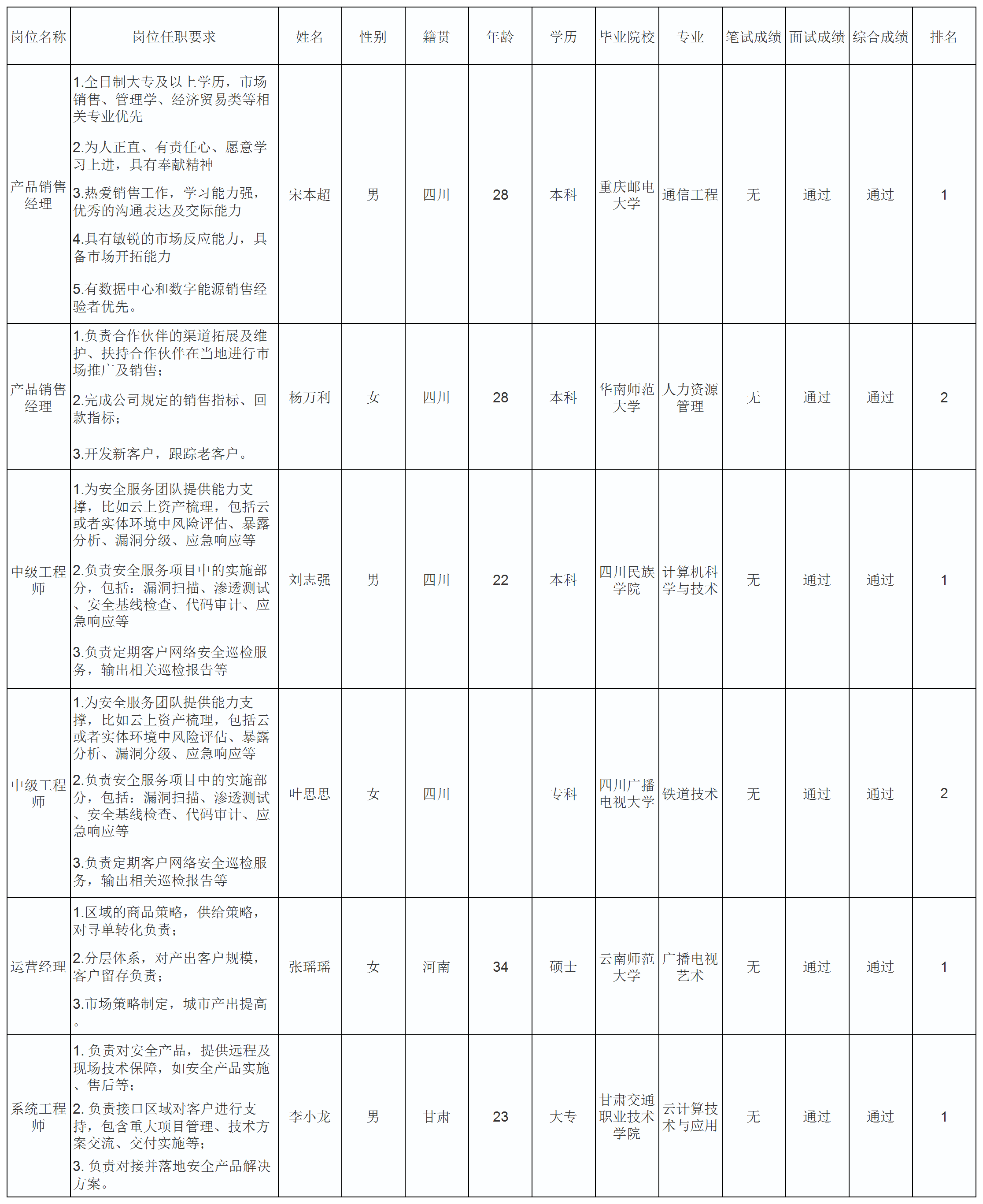 根據(jù)四川長(zhǎng)虹佳華信息產(chǎn)品有限責(zé)任公司發(fā)布的招聘公告及招聘相關(guān)規(guī)定,經(jīng)筆試、面試等程序,現(xiàn)將筆試(面試)成績(jī)予以公示。
