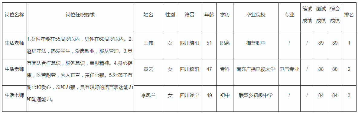 根據綿陽中學實驗學校發(fā)布的招聘公告及招聘相關規(guī)定,經面試等程序,現(xiàn)將成績予以公示。