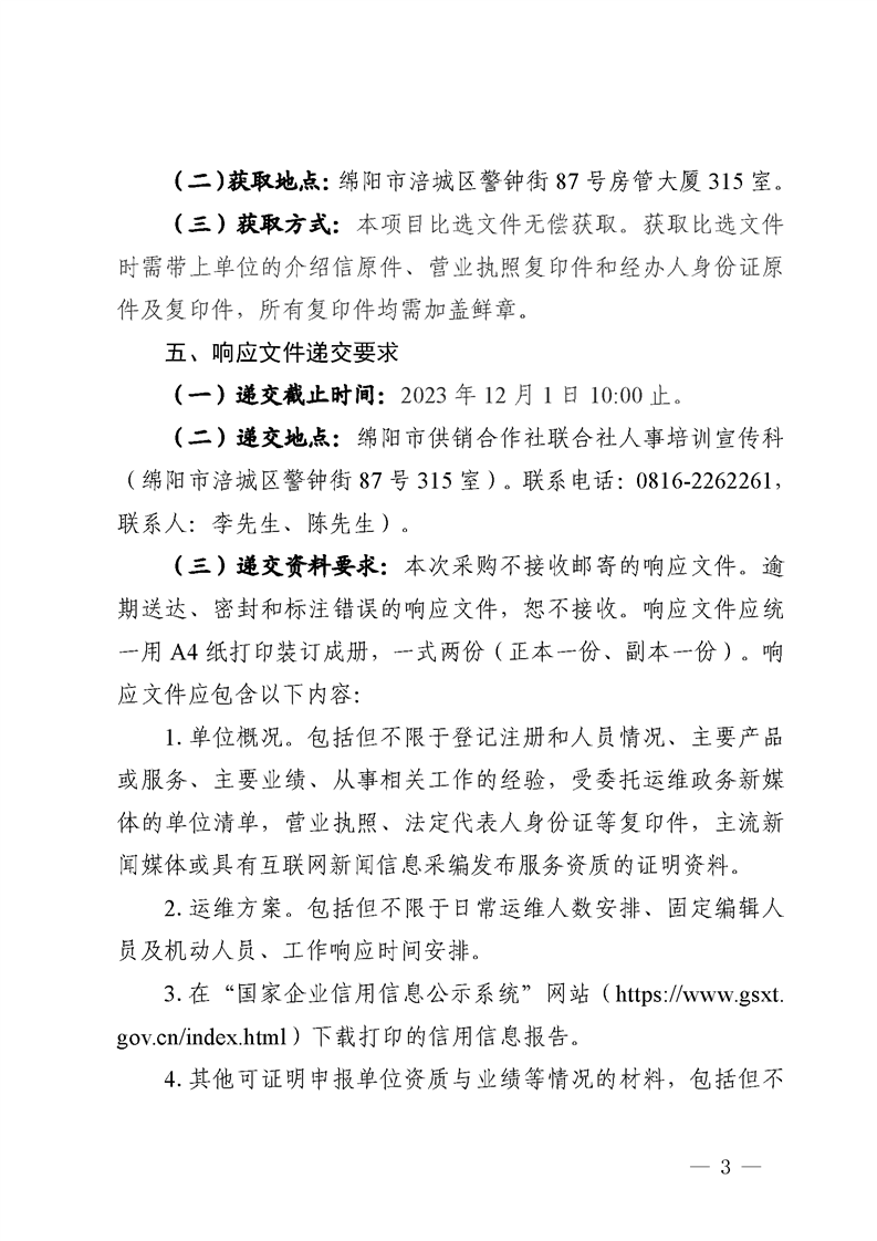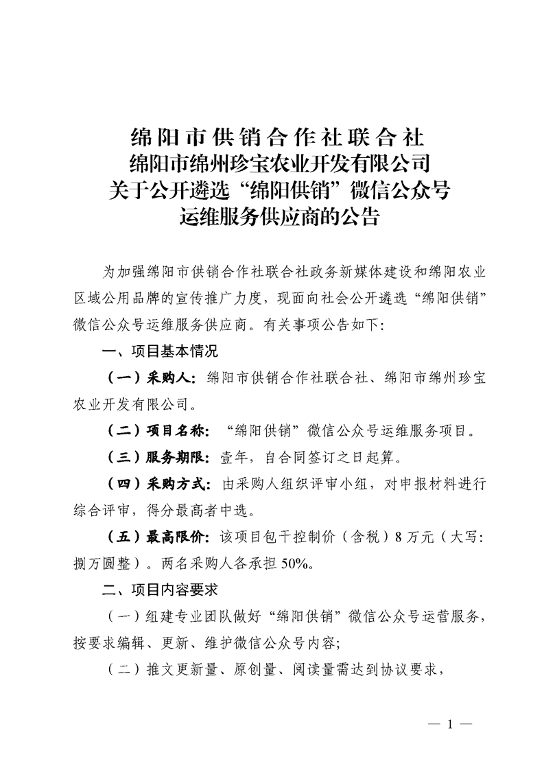 綿陽市供銷合作社聯(lián)合社關(guān)于公開遴選“綿陽供銷”微信公眾號運(yùn)維服務(wù)供應(yīng)商的公告