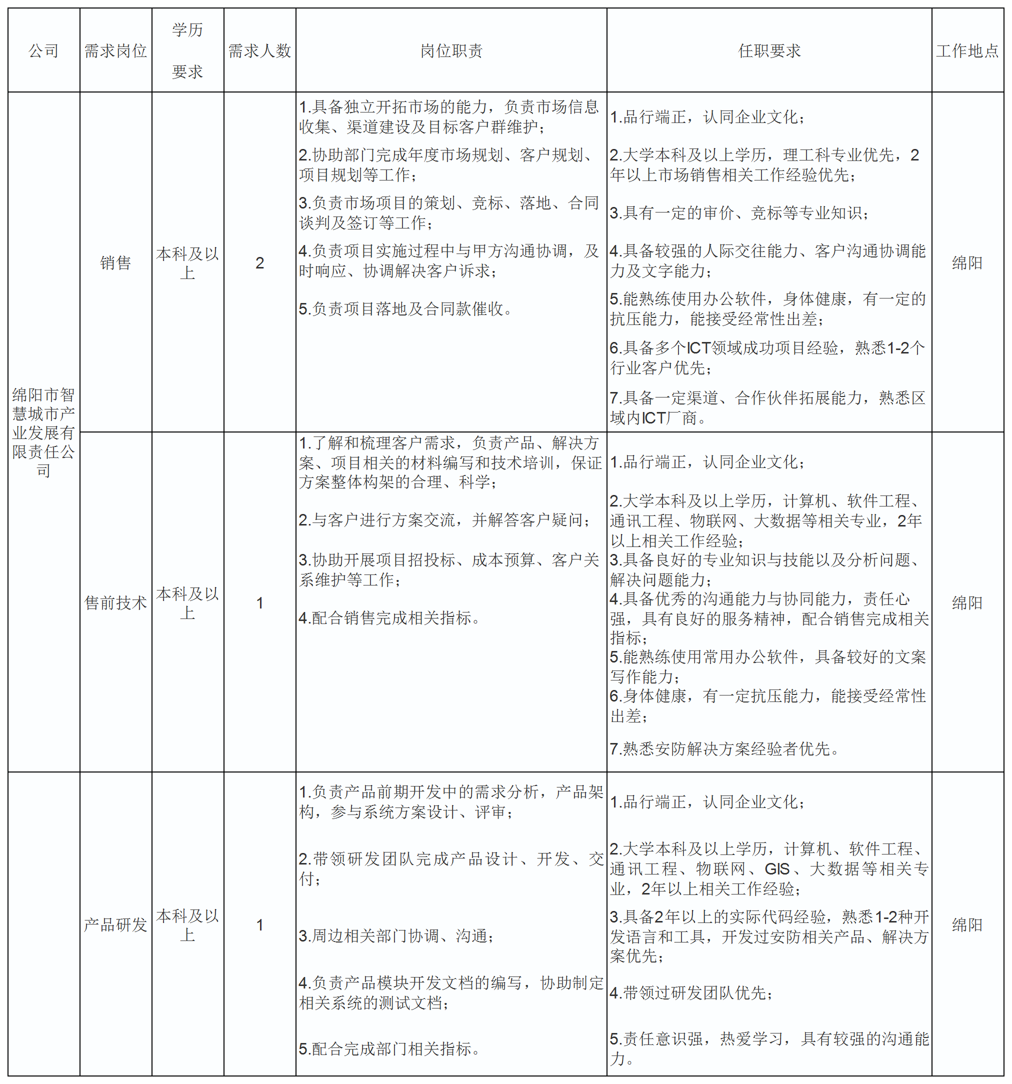 薪酬和福利待遇按照《綿陽市智慧城市產(chǎn)業(yè)發(fā)展有限責(zé)任公司薪酬管理辦法(試行)》有關(guān)規(guī)定執(zhí)行。