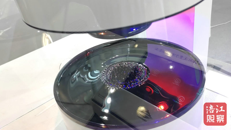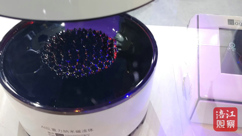 在科博會3號展館,一個小巧的透明“小盒子”格外吸引參展觀眾的眼球,它的內容物——磁流體通過磁場控制,跟隨音樂節(jié)拍“舞動”;又根據(jù)人的指令給予動作回應;或根據(jù)表情模仿功能泛起情緒“漣漪”……它就是魅聲科技展位的“音流雕塑”,全稱反重力磁流體AI科教儀。