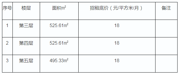 為規(guī)范和加強國有資產(chǎn)管理,提高國有資產(chǎn)使用效益,根據(jù)公司管理要求,經(jīng)研究決定對位于塘汛公路養(yǎng)護(hù)站(綿陽市經(jīng)開區(qū)塘汛街道洪恩西路2號)1棟3至5層辦公樓,按照公平、公正、公開的原則面向社會公開招租,現(xiàn)將有關(guān)事項通知如下: