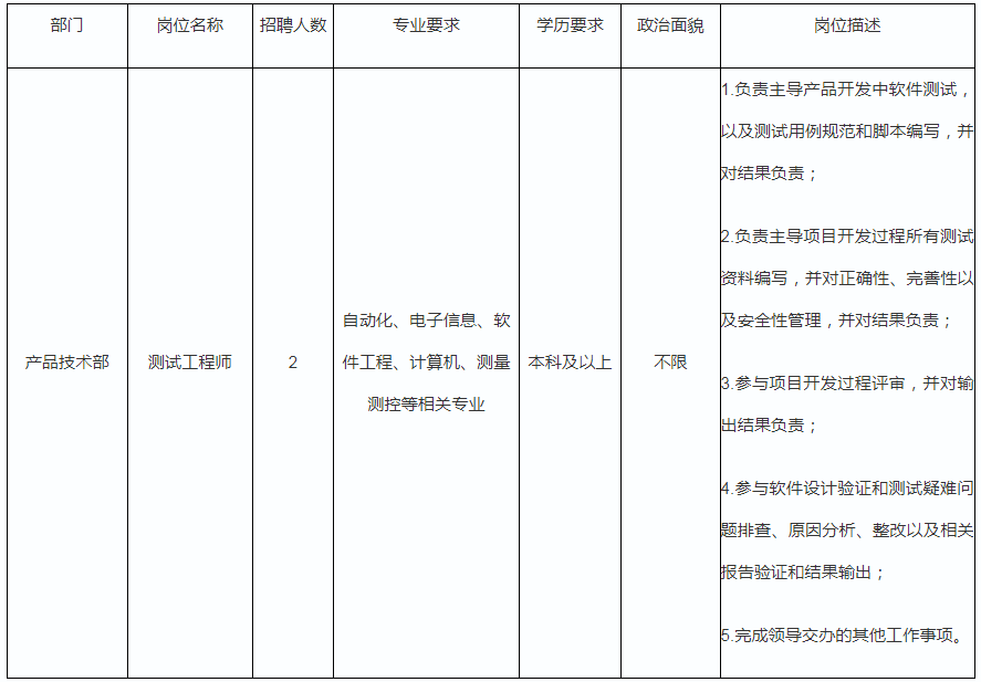 5.工作經(jīng)歷:具有測(cè)試相關(guān)工作3年及以上經(jīng)歷。