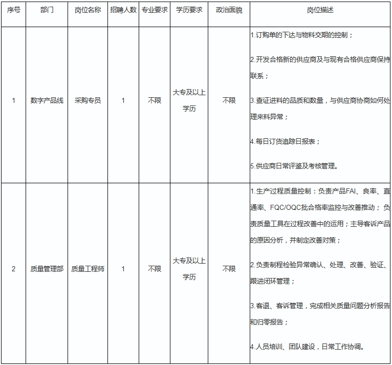 4.技能要求:熟練使用電腦和辦公系統(tǒng),熟練運(yùn)用質(zhì)量工具、能獨(dú)立推動(dòng)改善、敏銳的質(zhì)量觀察力,快速適應(yīng)公司文化。