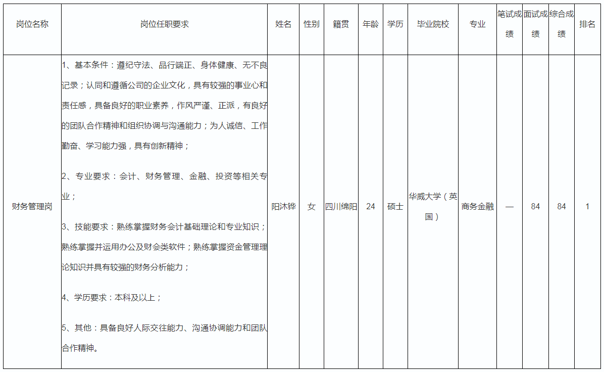 根據(jù)四川九洲投資控股集團(tuán)有限公司發(fā)布的招聘公告及招聘相關(guān)規(guī)定,經(jīng)筆試、面試等程序,現(xiàn)將筆試(面試)成績予以公示。