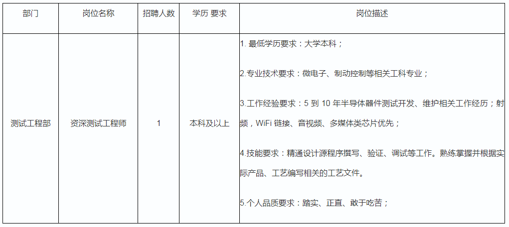 2.教育背景:應具有本科及以上文化程度,微電子/半導體/集成電路/電子/通信/計算機等相關專業(yè);