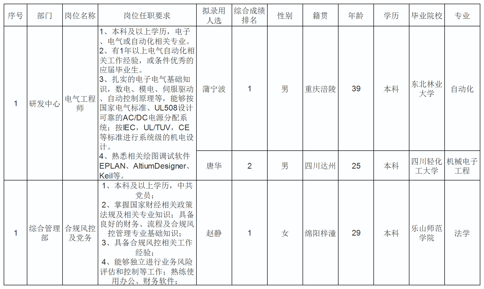 根據(jù)中玖閃光醫(yī)療科技有限公司發(fā)布的招聘公告及招聘相關(guān)規(guī)定,經(jīng)過(guò)篩選、面試、體檢等程序,擬錄用蒲寧波、唐華、趙靜同志到中玖閃光醫(yī)療科技有限公司工作,現(xiàn)予以公示,具體情況如下: