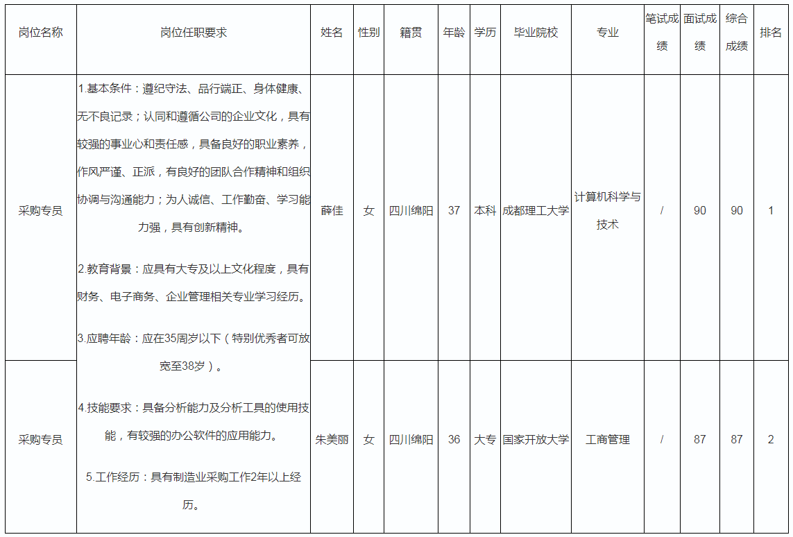 根據四川九華光子通信技術有限公司發(fā)布的招聘公告及招聘相關規(guī)定,經面試程序,現將面試成績予以公示。