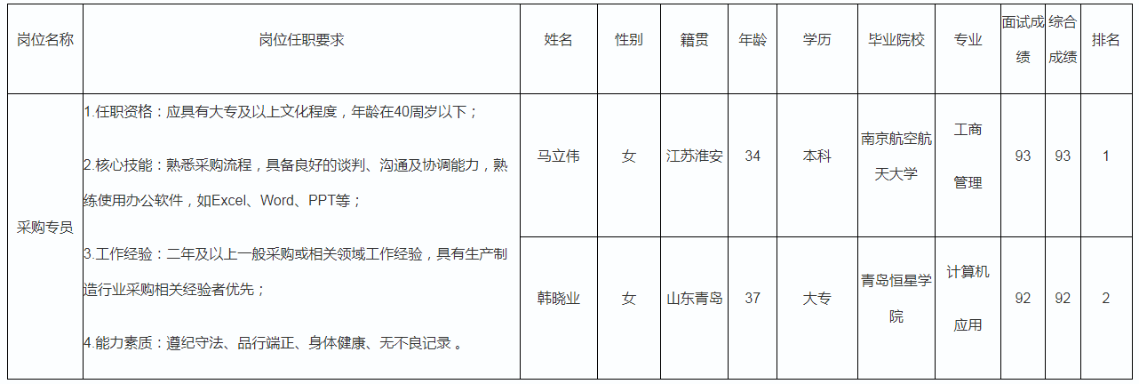 根據(jù)江蘇格潤新材料有限公司發(fā)布的招聘公告及招聘相關(guān)規(guī)定,經(jīng)面試程序,現(xiàn)將面試成績予以公示。