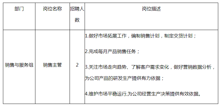 5. 工作經(jīng)驗:具備5年及以上銷售工作經(jīng)驗,有鋰離子電池銷售團隊管理者優(yōu)先考慮。