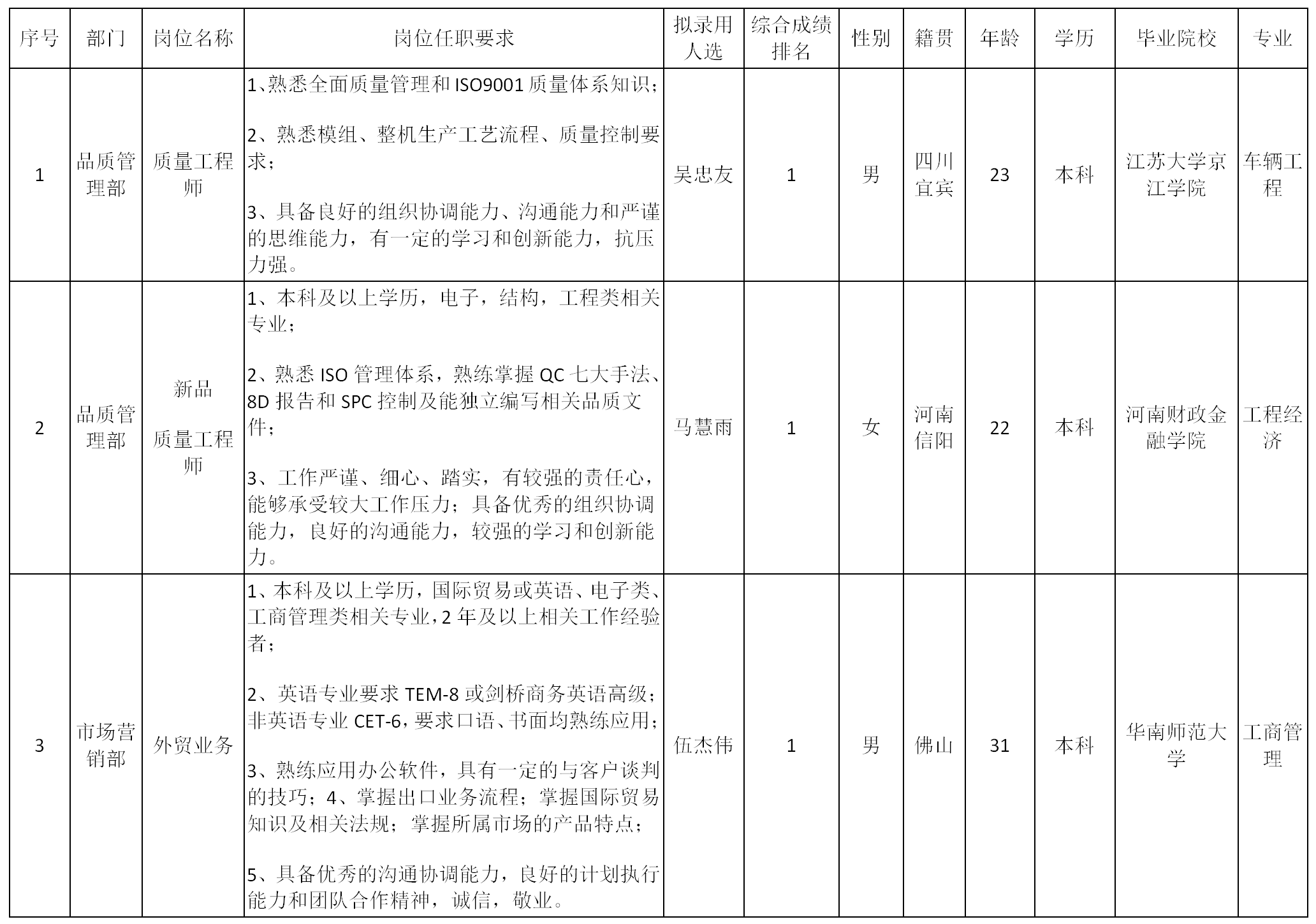 根據(jù)廣東長虹電子有限公司發(fā)布的招聘公告及招聘相關規(guī)定,經(jīng)面試、考察、體檢等程序,擬錄用黎露同志到公司辦公室工作,現(xiàn)予以公示,具體情況如下: