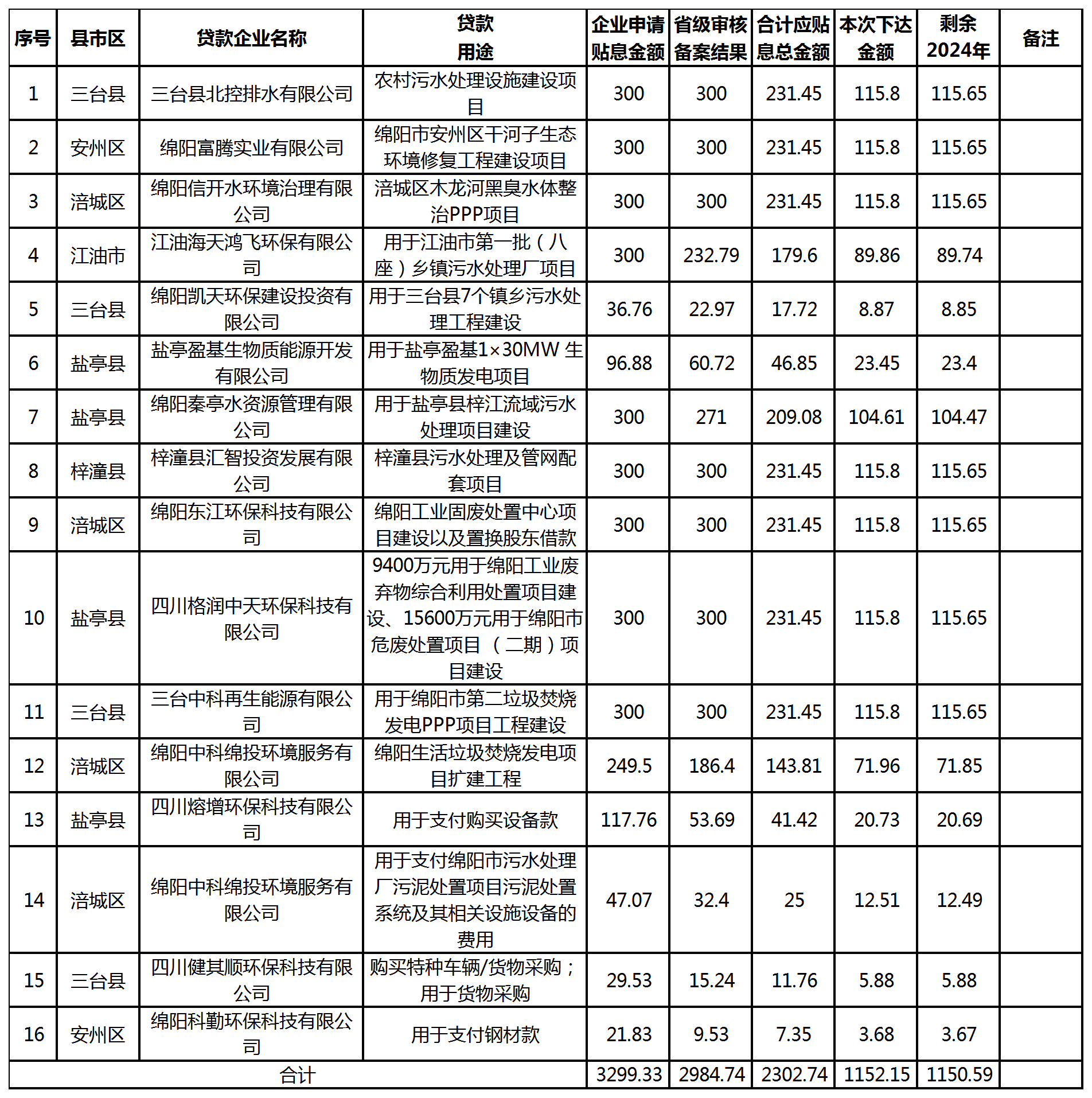 根據(jù)省財政廳《關(guān)于下達(dá)第二批中央和省級生態(tài)環(huán)保資金預(yù)算的通知》(川財資環(huán)〔2023〕80號),下達(dá)2022年省級生態(tài)環(huán)保貸款貼息資金2302.74萬元,其中,2023年已下達(dá)資金1152.15萬元,2024年將下達(dá)資金1150.59萬元。我局?jǐn)M定了《2022年省級生態(tài)環(huán)保貸款貼息資金擬分配方案》,于2023年12月15日至2023年12月21日進(jìn)行了公示。公示期間,經(jīng)我局與市財政局會商研究,對資金分配方案中年度補(bǔ)助金額予以適當(dāng)調(diào)整?,F(xiàn)將調(diào)整后的資金分配方案予以公示。