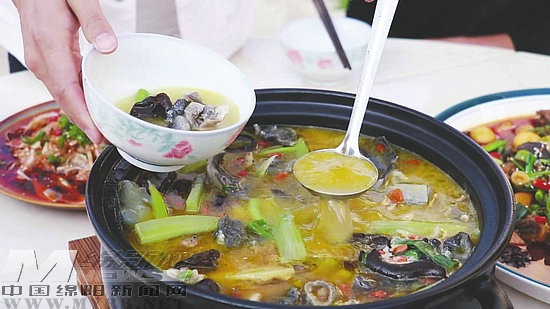 在梓潼縣金龍鎮(zhèn),早冬時(shí)節(jié)的甲魚(yú)雞湯備受青睞,不但鮮香美味,更滋補(bǔ)養(yǎng)胃。甲魚(yú)是金龍鎮(zhèn)龍泉村的特色水產(chǎn)。一大早,村民從池塘里撈出兩只肥美的甲魚(yú),作為當(dāng)天的主菜。
