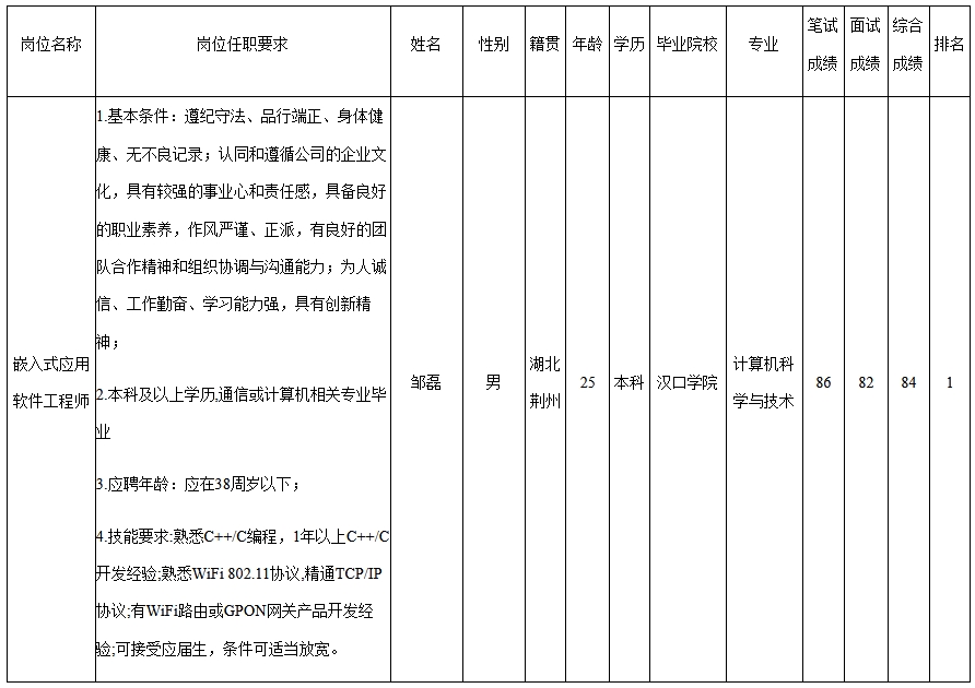 根據(jù)深圳市九洲電器有限公司發(fā)布的招聘公告及招聘相關規(guī)定,經(jīng)筆試、面試等程序,現(xiàn)將筆試(面試)成績予以公示。