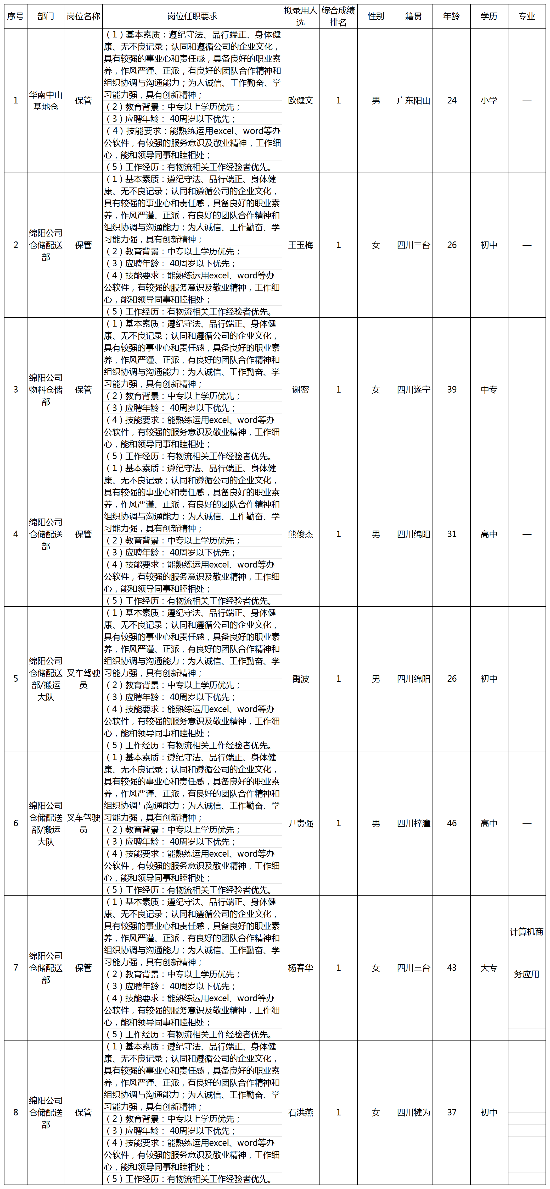 根據四川長虹民生物流股份有限公司發(fā)布的招聘公告及招聘相關規(guī)定,經筆試、面試、考察、體檢等程序,擬錄用歐健文等8名同志到四川長虹民生物流股份有限公司工作,現予以公示,具體情況如下: