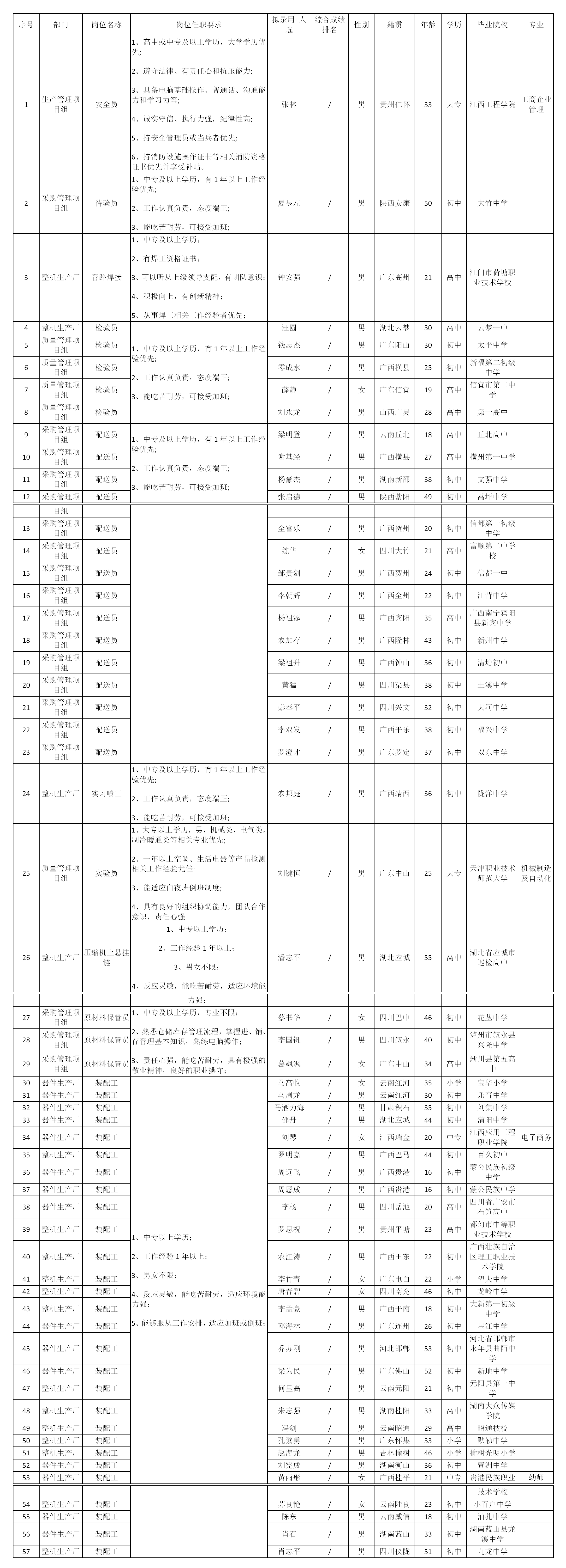 根據中山長虹電器有限公司發(fā)布的招聘公告及招聘相關規(guī)定,經面試、考察、體檢等程序,擬錄用張林等同志到中山長虹工作,現(xiàn)予以公示,具體情況如下: