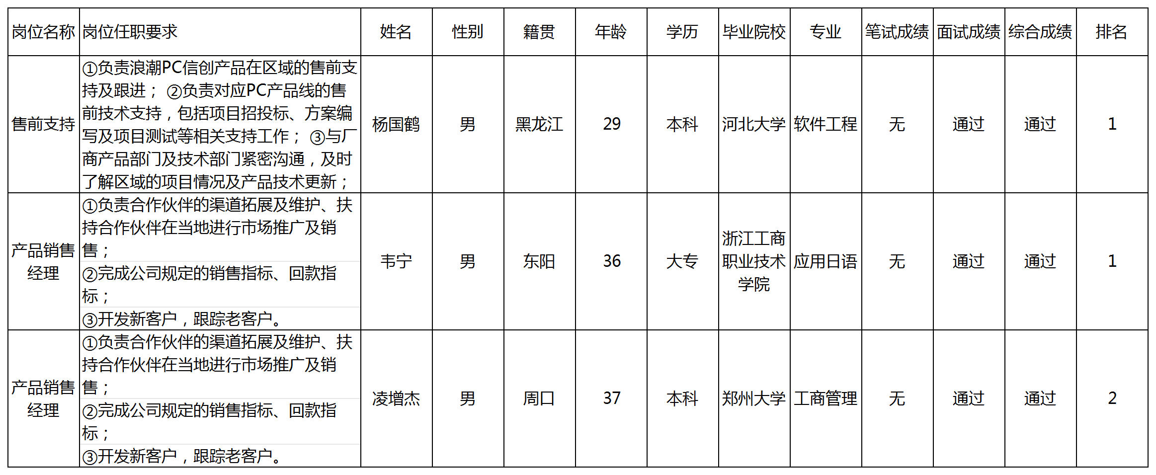 根據(jù)四川長(zhǎng)虹佳華信息產(chǎn)品有限責(zé)任公司發(fā)布的招聘公告及招聘相關(guān)規(guī)定,經(jīng)筆試、面試等程序,現(xiàn)將筆試(面試)成績(jī)予以公示。