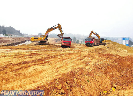 游仙武引二水廠項(xiàng)目建設(shè)現(xiàn)場(chǎng),挖掘機(jī)轟鳴作響,運(yùn)輸車來回穿梭。?。ňd報(bào)融媒記者 陳冬冬 攝)