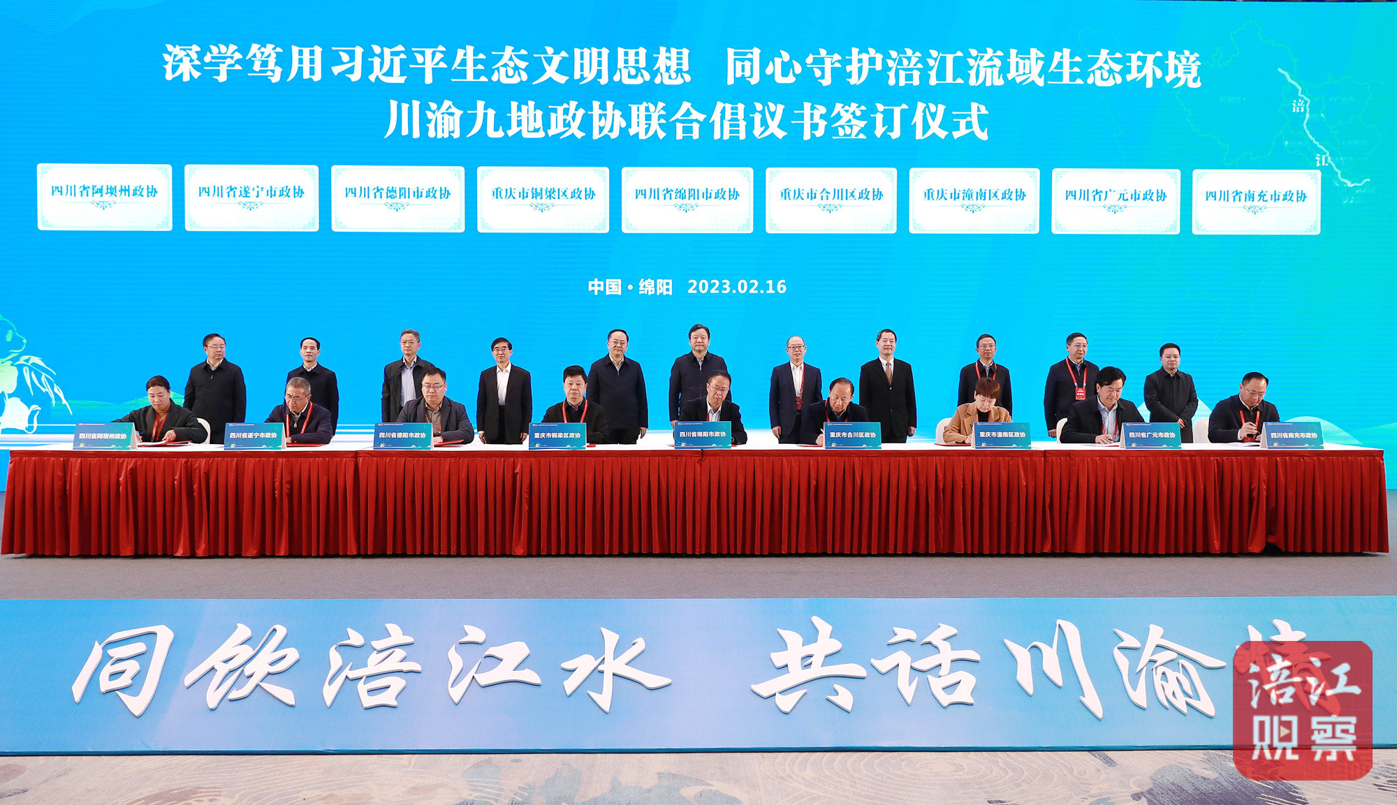 會前,與會嘉賓前往三江湖國家濕地公園、仙海水利風(fēng)景區(qū)、綿陽城市規(guī)劃展覽館等地參觀考察。會上,綿陽市副市長袁明,四川省生態(tài)環(huán)境廳黨組副書記、副廳長李岳東,重慶市生態(tài)環(huán)境局副局長向霆作交流發(fā)言;重慶市合川區(qū)、銅梁區(qū)、潼南區(qū),四川省綿陽市、德陽市、廣元市、遂寧市、南充市、阿壩州政協(xié)相關(guān)負(fù)責(zé)同志共同簽訂《深學(xué)篤用習(xí)近平生態(tài)文明思想同心守護(hù)涪江流域生態(tài)環(huán)境聯(lián)合倡議書》。